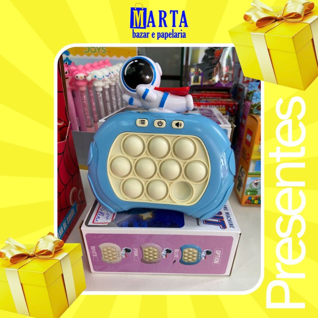 Se você está procurando uma ideia divertida, educativa e acessível de presente para crianças, conheça o Pop It Eletrônico com Luz e Som, disponível no Bazar Marta – Bazar e Papelaria em São Paulo!