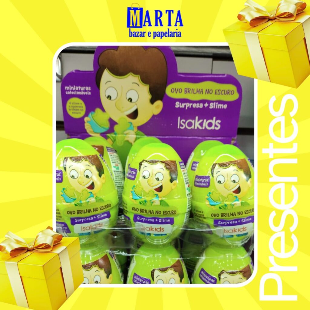 Brincar é essencial para o desenvolvimento das crianças — e nada melhor do que unir diversão e criatividade em um só brinquedo! O Ovo Surpresa + Slime Isakids é sucesso absoluto e está disponível na Marta Bazar e Papelaria, trazendo muita alegria e surpresas para os pequenos. 💚